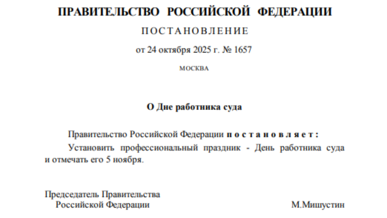 Решение закреплено в постановлении от 24 октября 2025 года №1657, которое подписал премьер-министр РФ Михаил Мишустин.